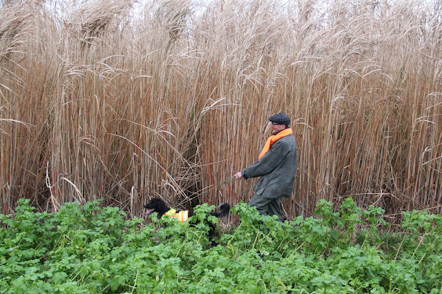 Onderaan het veld had Bert een vos geschoten, Amber had de eer om deze te apporteren.